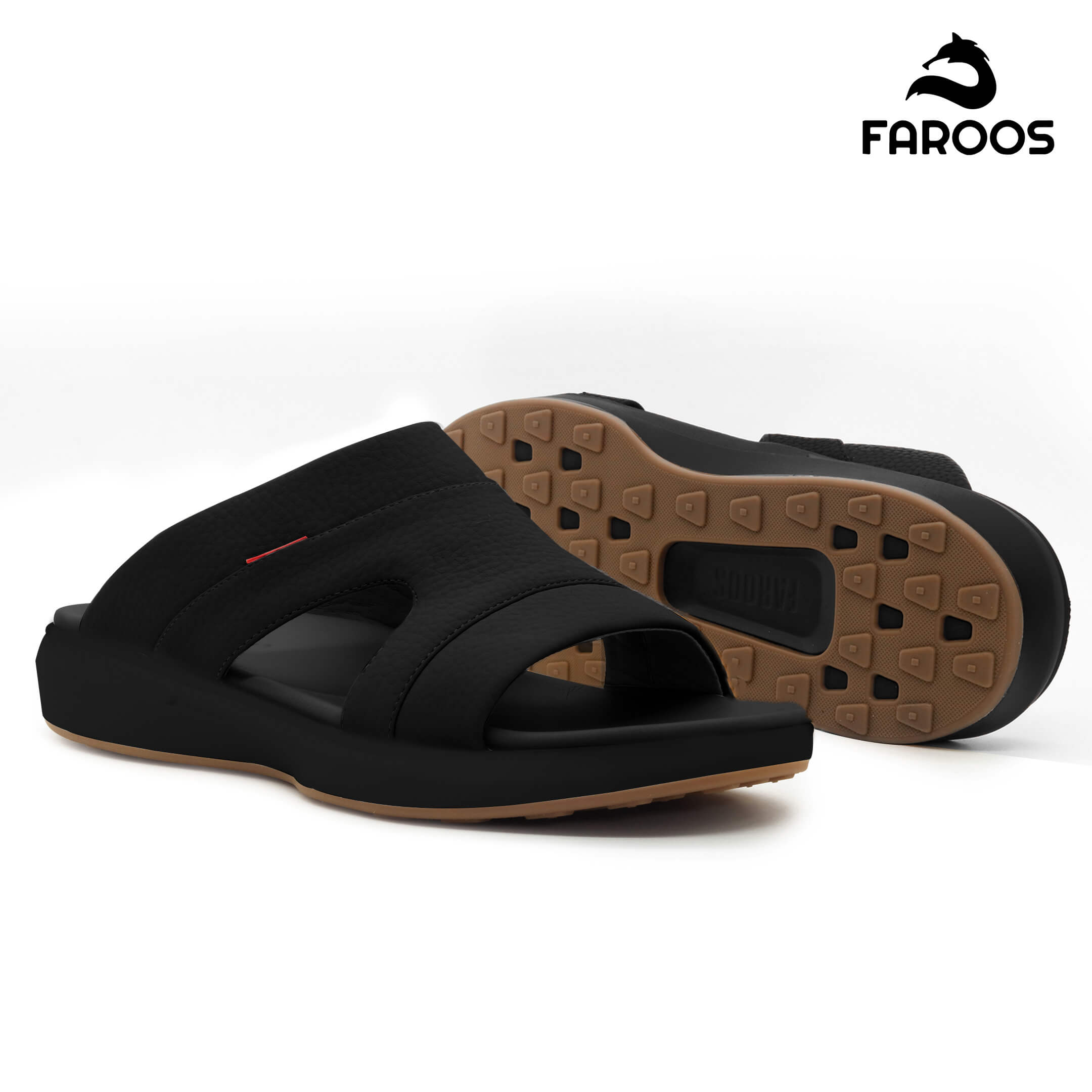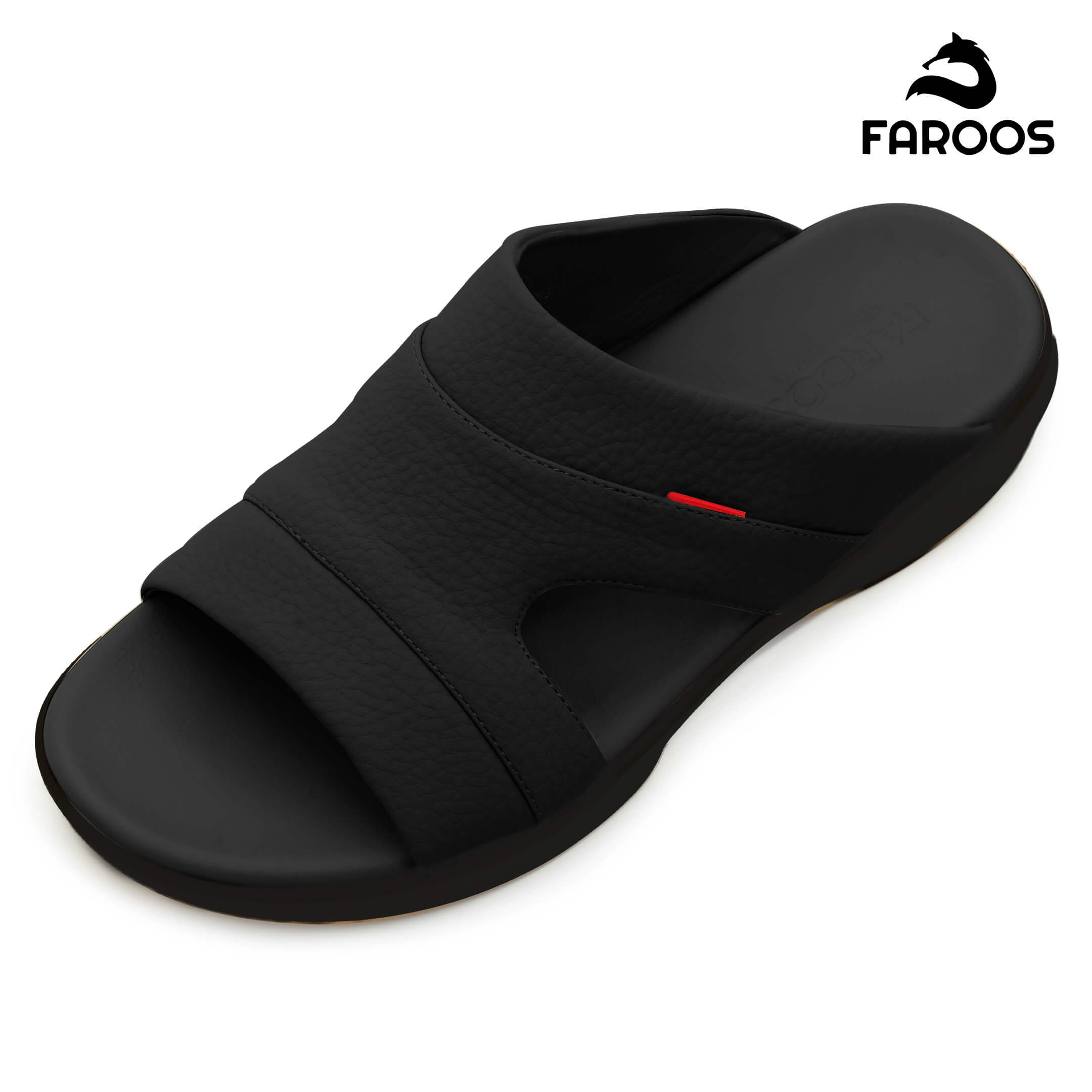 Faroos[F542]M013 Full Black Gents Arabic Sandal