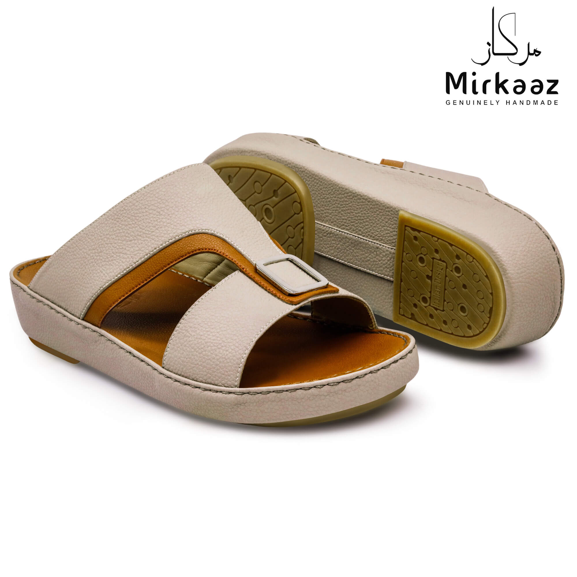 Keep your feet comfortable and safe with these unique leather sandals from the house of Mirkaaz, UAE . This rich patterned sandal is perfect for all occasions. Crafted from a rich quality material, they are light weight and highly safe because of its 'Anti-slip' grip bottom. This pair of Leather sandals is durable, crafted by professional hands in UAE. If you want to walk in comfort and style alike, opt for this pair.