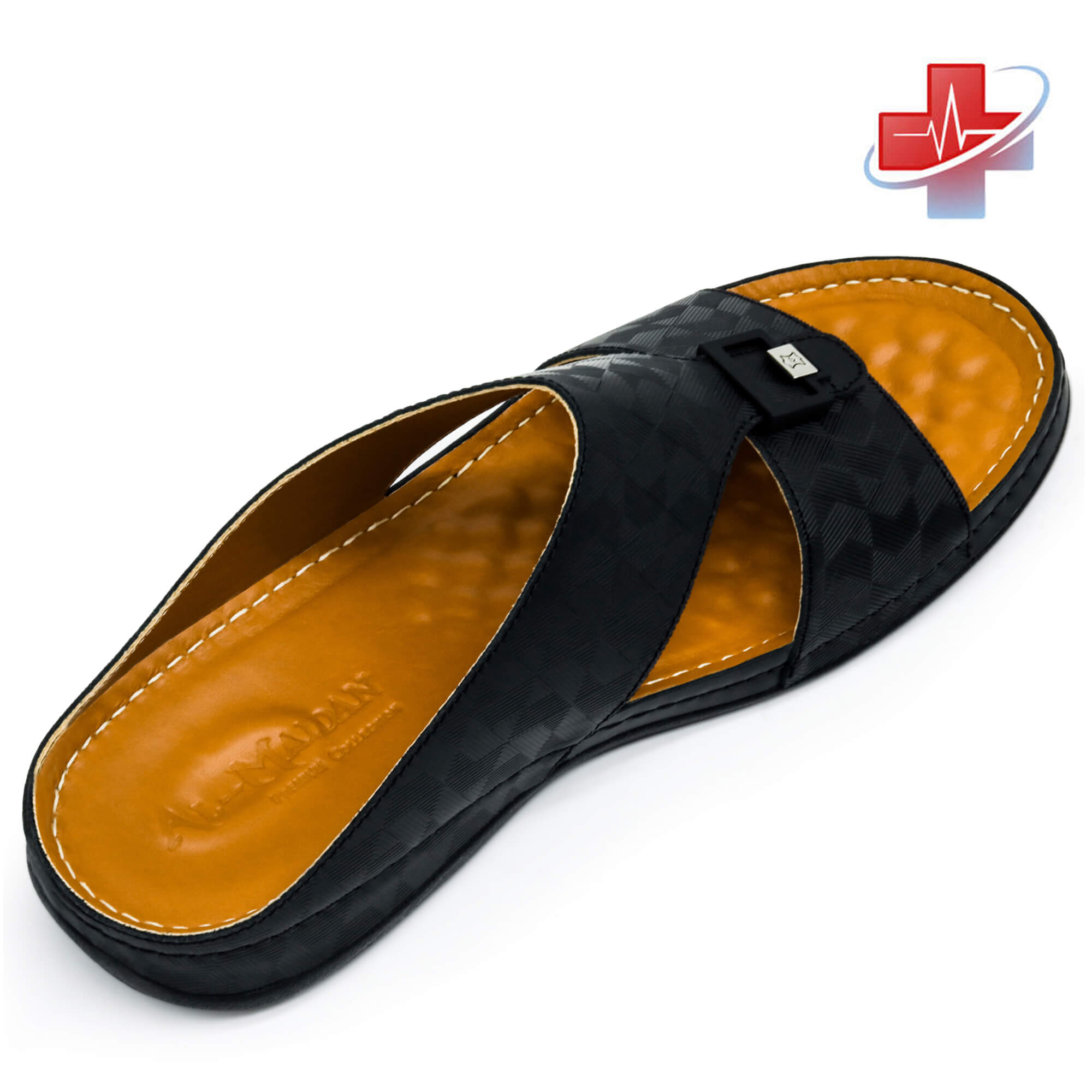 إذا لم تكن قدميك على ما يرام، فإن حياتك ليست على ما يرام أيضًا، ويمكن أن يمثل العثور على الصندل الطبي المثالي للرجال للراحة في الطقس الدافئ تحديًا. أصبح هذا التحدي مع "صنادل الميدان" أسهل قليلاً وستجد أنه سرعان ما يصعد الهواء الدافئ فوق أصابع قدميك بإستخدام الصندل الطبي لدينا. نحن نقدم الصنادل الطبية المُزوَدة بدعم القدمين والراحة المُطلقة. راحة قدمك تبعد نقرة واحدة فقط على موقع albusthan.ae، والذي يوفِّر الراحة للعملاء وأفضل الصنادل الطبية المتاحة اليوم. قد يكون "الميدان" هو الصندل الذي تحتاجه للوصول إلى الشاطئ، حيث يتعين عليك بذل جهد إضافي عند المشي على طول الشاطئ والذي من المحتمل أن يسبب ضغطًا إضافيًا على القدم أو حتى الأحذية الاحترافية التي يمكنك ارتداؤها في العمل لتقليل الإجهاد والضغط من القدمين. فهو ذات ألوان متعددة وتصميمات مختلفة. وهو مصنوع يدويًا في دولة الإمارات العربية المتحدة باستخدام جلد أصلي عالي الجودة بنعل طبي. وهو خفيف الوزن للغاية بالإضافة إلى المظهر الأنيق والراحة القصوى، "الميدان" هو الخيار الأفضل لأي شخص يتطلع إلى استخدامه لفترة طويلة دون إزعاج قدميك وجسمك.