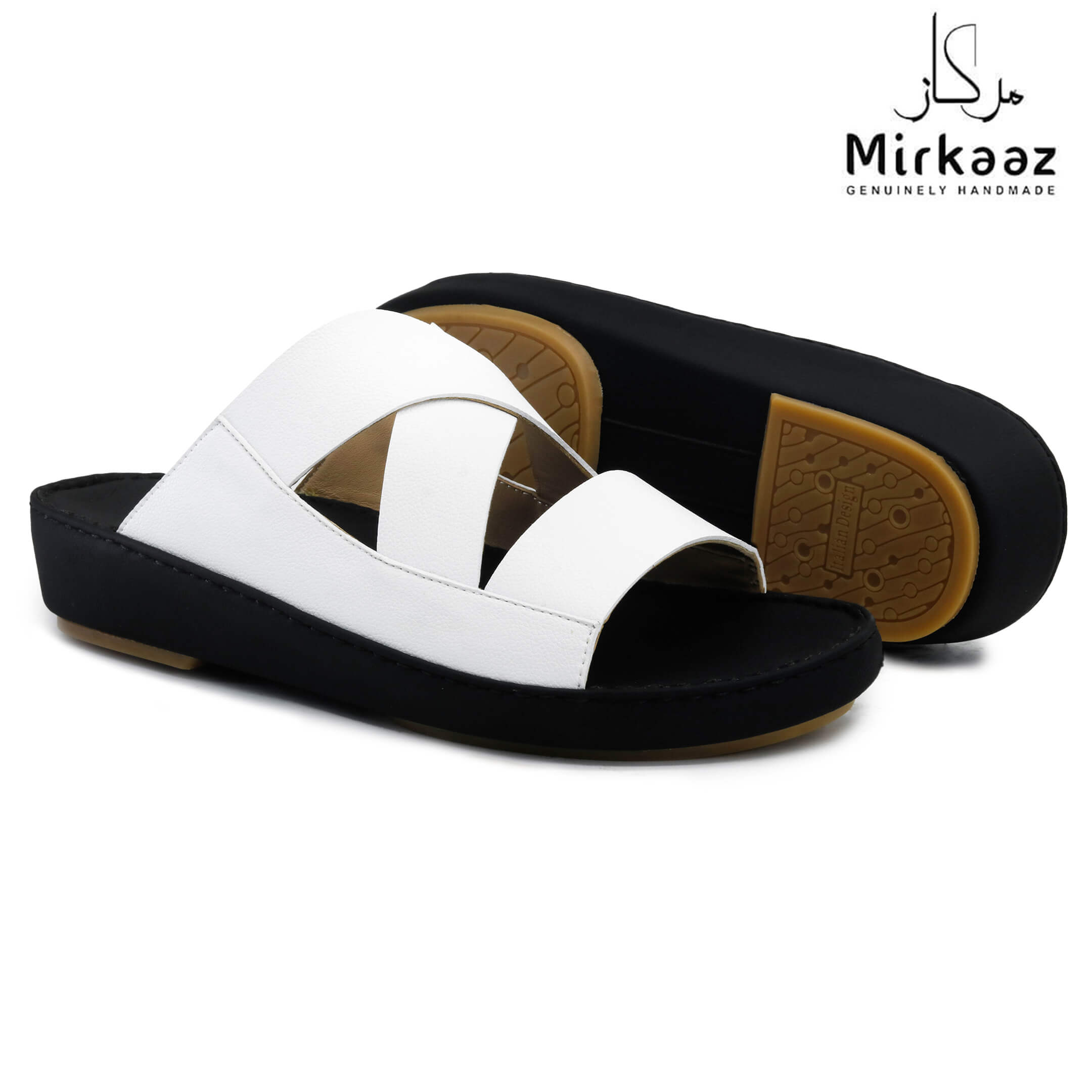 حافظ على راحة وسلامة قدميك من خلال صنادل الجلد المميزة من دار ميركاز في الإمارات العربية المتحدة. فهذا الصندل الغني بالنقوش مثالي لجميع المناسبات. صندل مصنوع من مواد عالية الجودة تتميز بخفة وزنها ومستوى أمانها العالي بفضل النعل "المقاوم للانزلاق". كما أن هذا الصندل الجلدي مصمم ليتحمل الاستعمال لفترة طويلة وتمت صناعته بواسطة متخصصين محترفين في الإمارات. فإذا كنت تريد أن تمشي بكل راحة وأناقة فلا تتردد في اقتناء هذا الصندل. هذا النعل مصنوع من الداخل من مواد عالية الجودة من البولي يوريثان الذي يتميز بالخفة والمتانة. تمت حياكته يدويًا باستخدام خيط مضفر قوي وتدوم الحياكة لفترة طويلة جدًا. تمنع بطانة النعل الداخلية المصنوعة من مواد عديمة الرائحة تراكم أي نوع من الروائح على سطحها مما يجعلها دائمًا نظيفة حتى بعد الاستخدام الطويل. يوفر المصنع ضمان 6 أشهر للحياكة والنعال