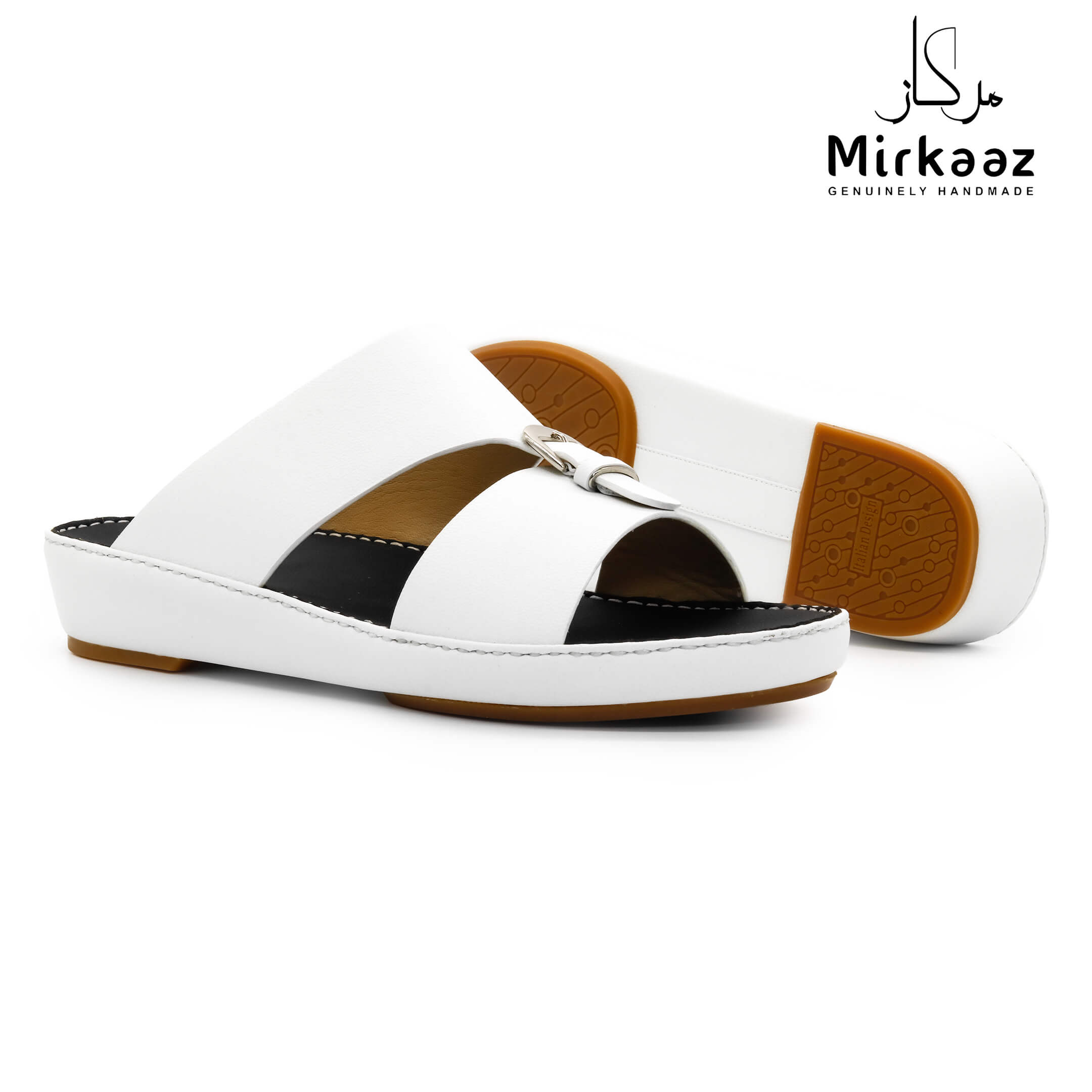 حافظ على راحة وسلامة قدميك من خلال صنادل الجلد المميزة من دار ميركاز في الإمارات العربية المتحدة. فهذا الصندل الغني بالنقوش مثالي لجميع المناسبات. صندل مصنوع من مواد عالية الجودة تتميز بخفة وزنها ومستوى أمانها العالي بفضل النعل "المقاوم للانزلاق". كما أن هذا الصندل الجلدي مصمم ليتحمل الاستعمال لفترة طويلة وتمت صناعته بواسطة متخصصين محترفين في الإمارات. فإذا كنت تريد أن تمشي بكل راحة وأناقة فلا تتردد في اقتناء هذا الصندل. هذا النعل مصنوع من الداخل من مواد عالية الجودة من البولي يوريثان الذي يتميز بالخفة والمتانة. تمت حياكته يدويًا باستخدام خيط مضفر قوي وتدوم الحياكة لفترة طويلة جدًا. تمنع بطانة النعل الداخلية المصنوعة من مواد عديمة الرائحة تراكم أي نوع من الروائح على سطحها مما يجعلها دائمًا نظيفة حتى بعد الاستخدام الطويل. يوفر المصنع ضمان 6 أشهر للحياكة والنعال