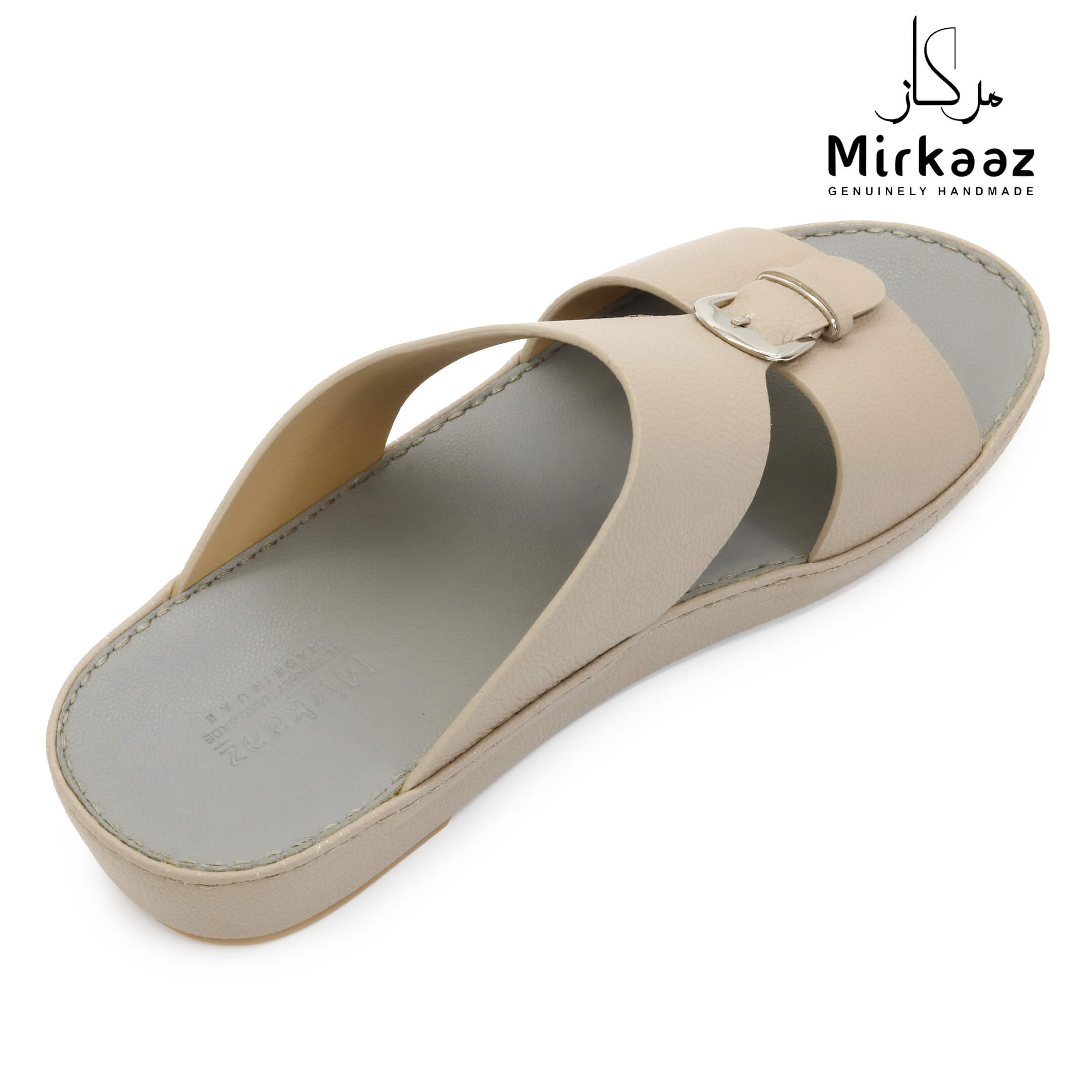 حافظ على راحة وسلامة قدميك من خلال صنادل الجلد المميزة من دار ميركاز في الإمارات العربية المتحدة. فهذا الصندل الغني بالنقوش مثالي لجميع المناسبات. صندل مصنوع من مواد عالية الجودة تتميز بخفة وزنها ومستوى أمانها العالي بفضل النعل "المقاوم للانزلاق". كما أن هذا الصندل الجلدي مصمم ليتحمل الاستعمال لفترة طويلة وتمت صناعته بواسطة متخصصين محترفين في الإمارات. فإذا كنت تريد أن تمشي بكل راحة وأناقة فلا تتردد في اقتناء هذا الصندل. هذا النعل مصنوع من الداخل من مواد عالية الجودة من البولي يوريثان الذي يتميز بالخفة والمتانة. تمت حياكته يدويًا باستخدام خيط مضفر قوي وتدوم الحياكة لفترة طويلة جدًا. تمنع بطانة النعل الداخلية المصنوعة من مواد عديمة الرائحة تراكم أي نوع من الروائح على سطحها مما يجعلها دائمًا نظيفة حتى بعد الاستخدام الطويل. يوفر المصنع ضمان 6 أشهر للحياكة والنعال