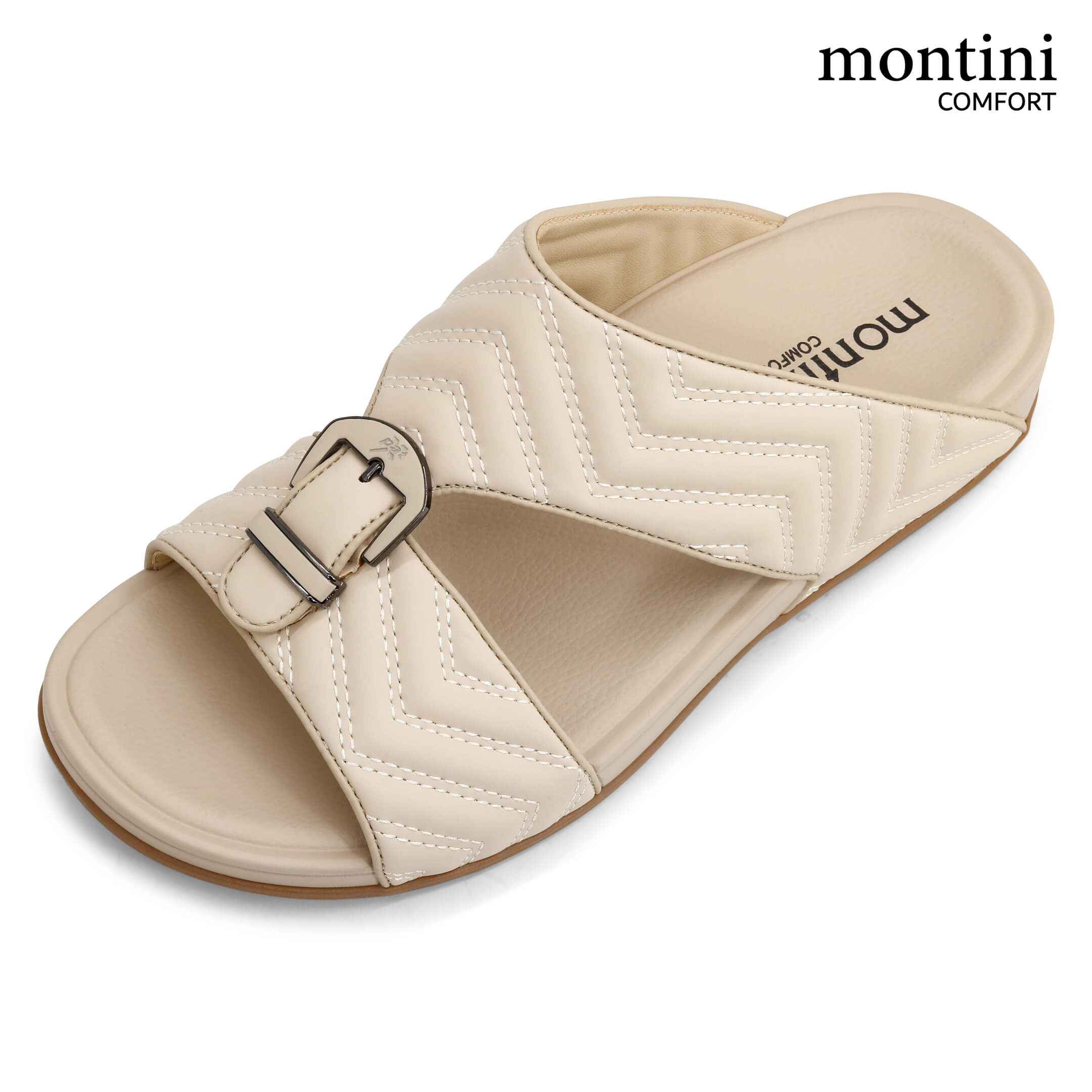 صنادل مونتيني مزودة بنوع جديد من النعال يضمن الراحة لقدميك. فالنعل مصنوع من مادة رغوية متماسكة.