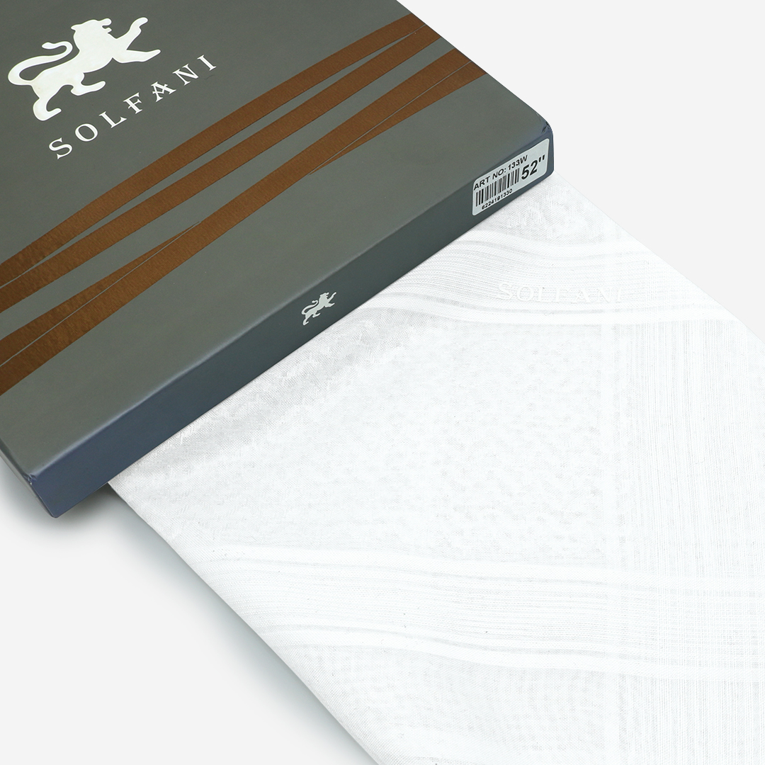 يعتبر هذا الشماغ من سولفاني الخيار الأمثل لمن يبحث عن شماغ ذو علامة تجارية وسعر مناسب. مصنوع من البوليستر مضافًا إليه بعض الخامات القطنية.