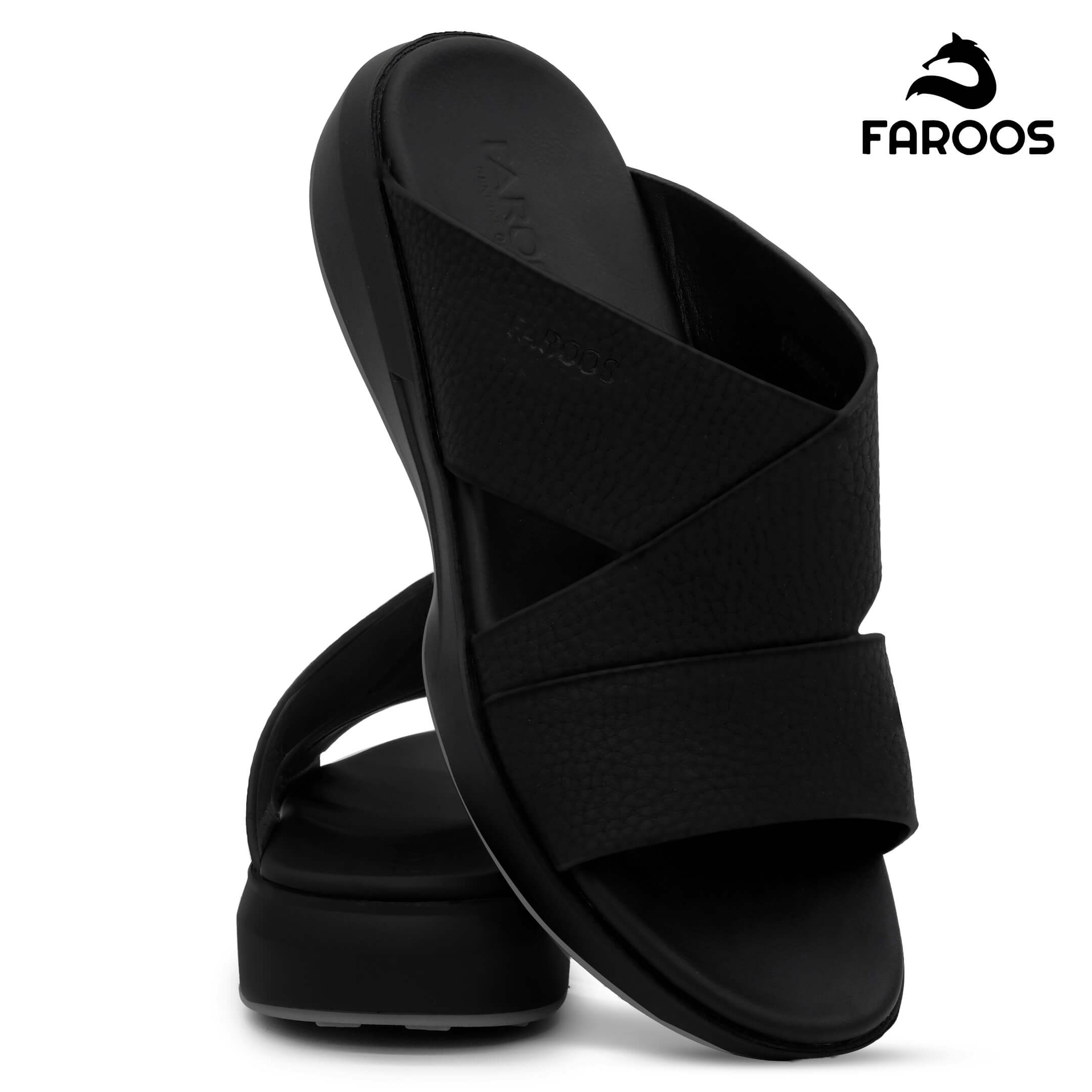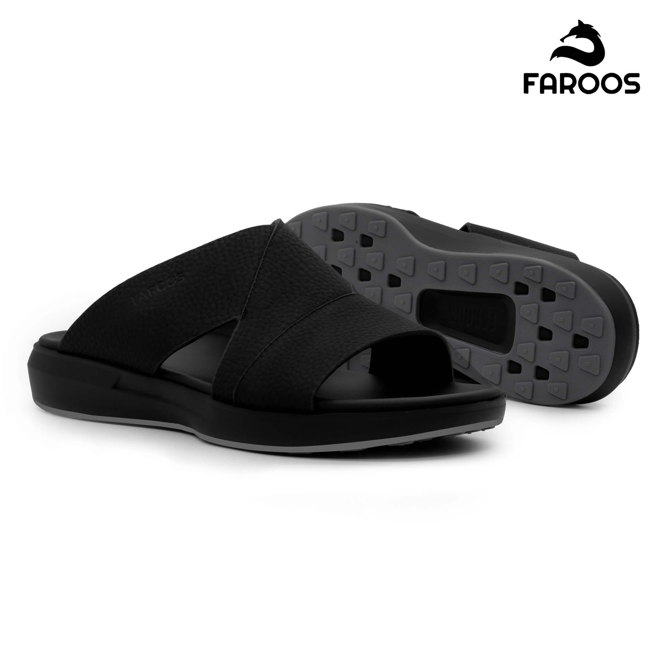 Faroos[F569]M011 Full Black Gents Arabic Sandal