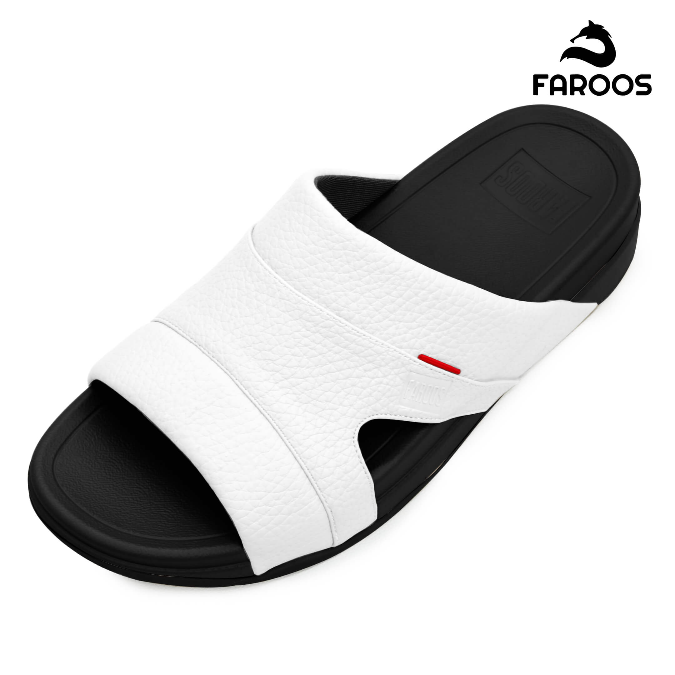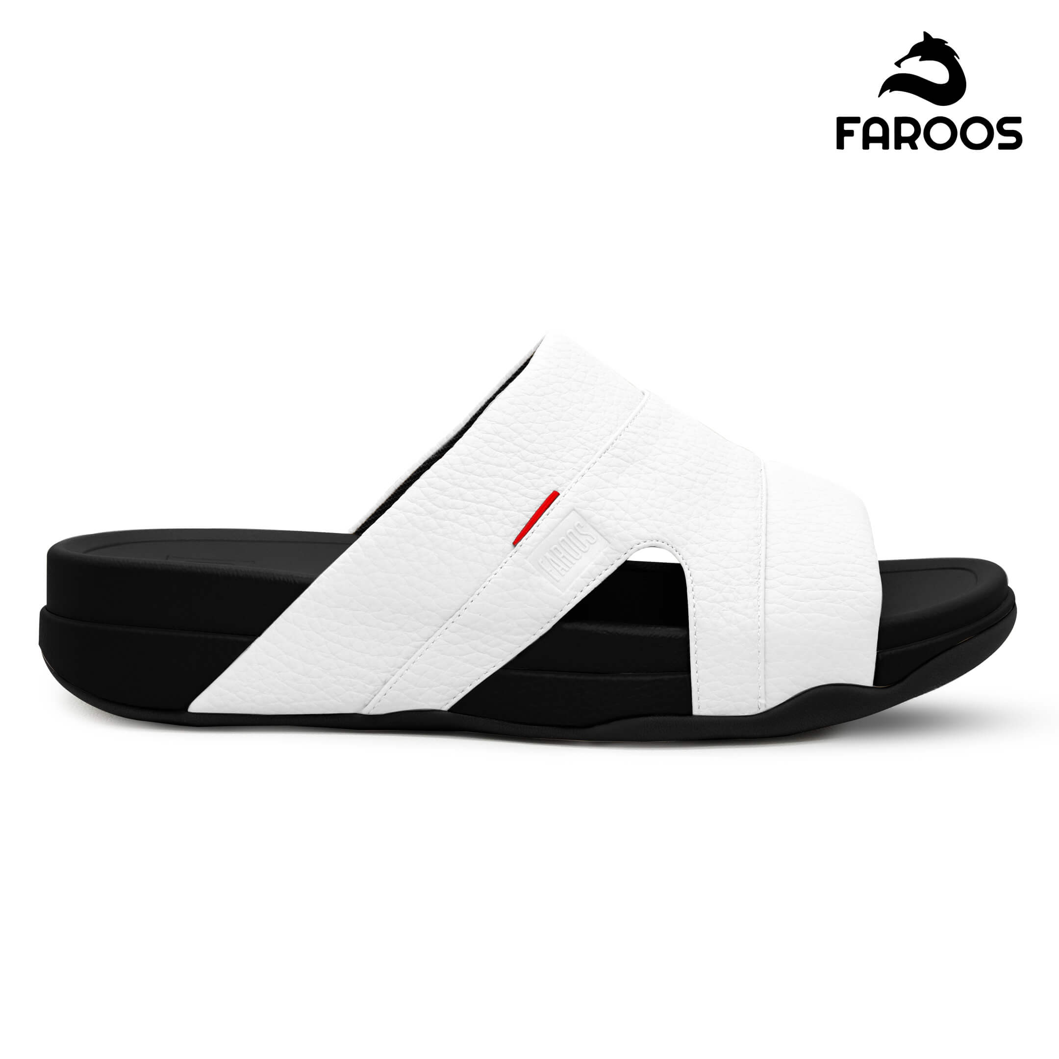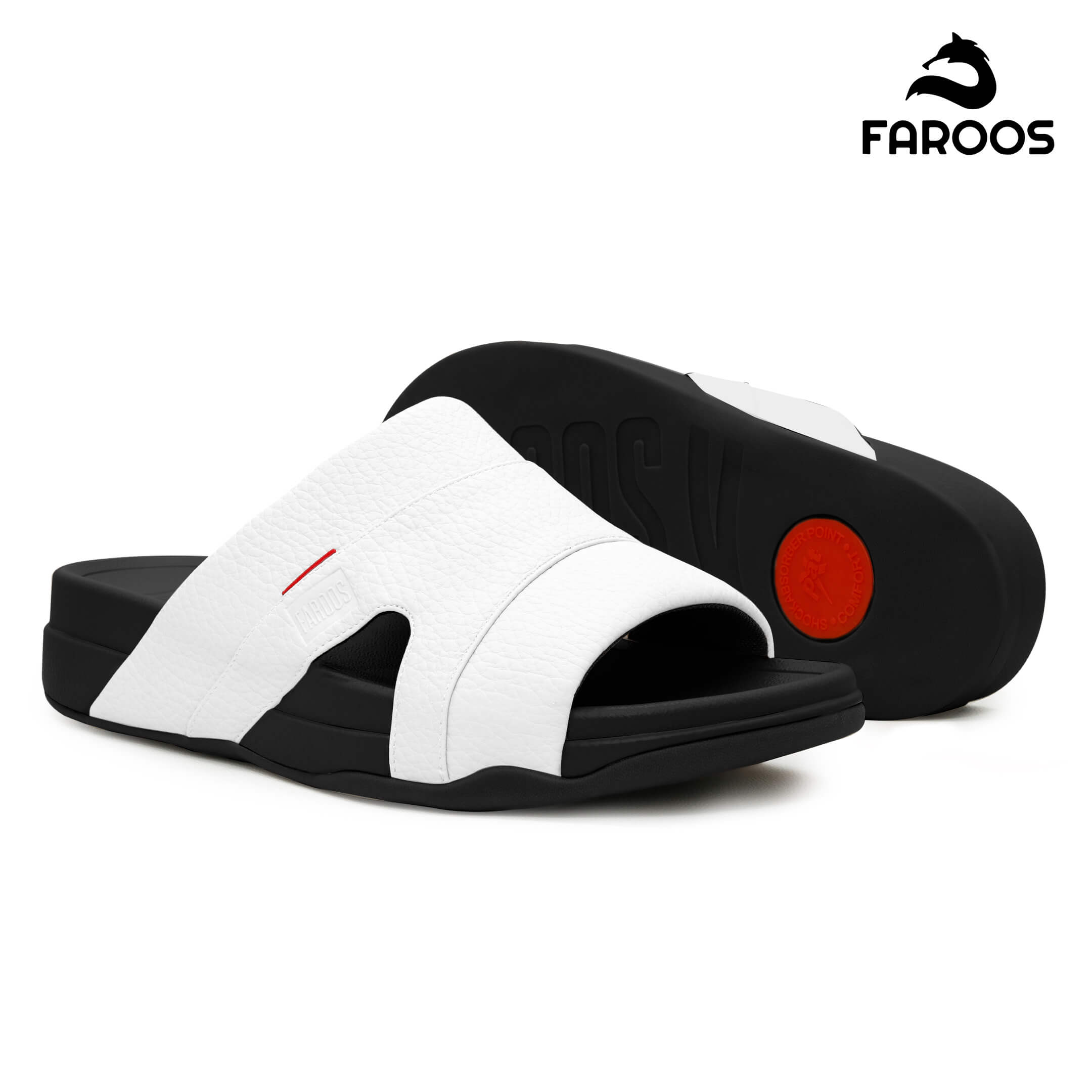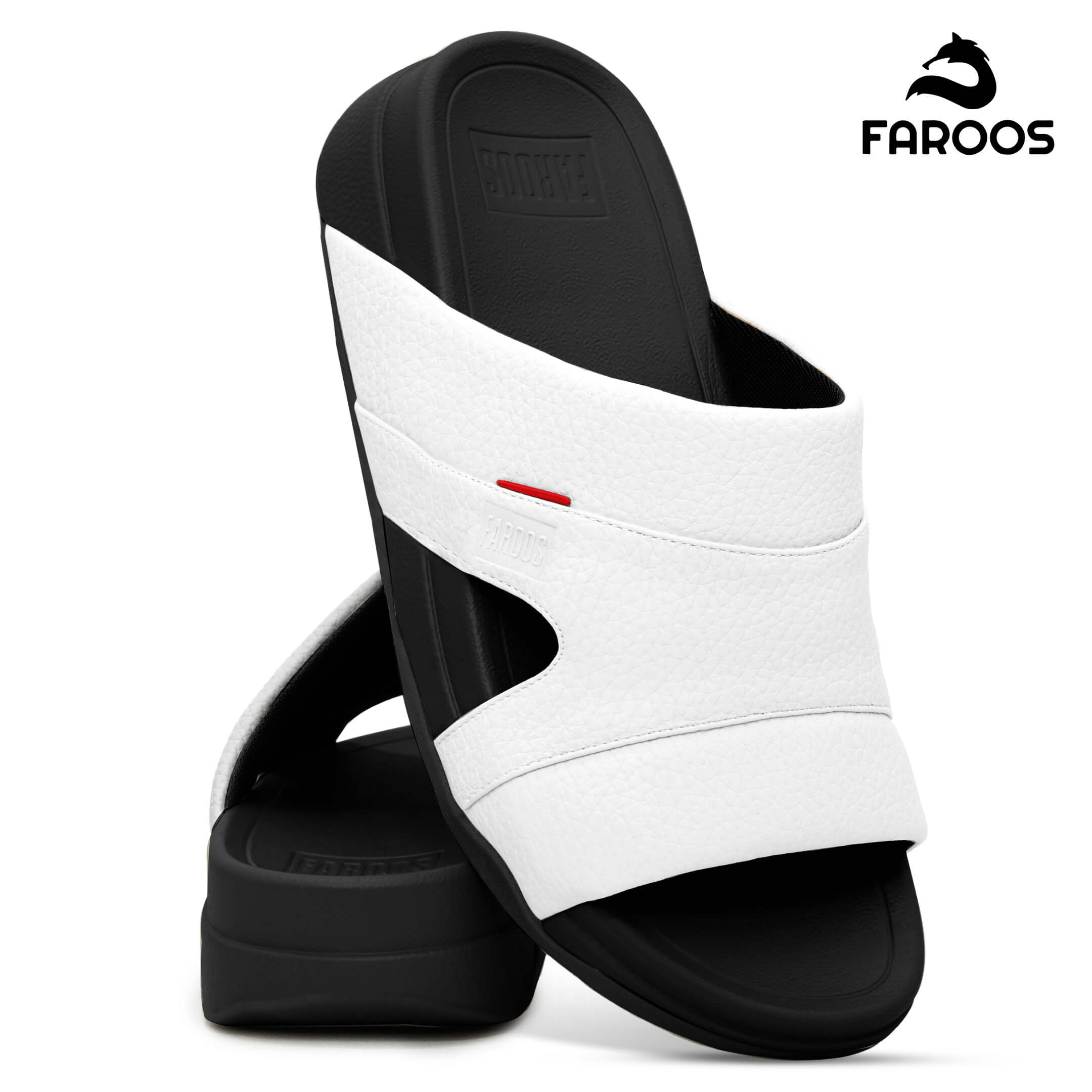Faroos[F614]M007 White Black Gents Arabic Sandal