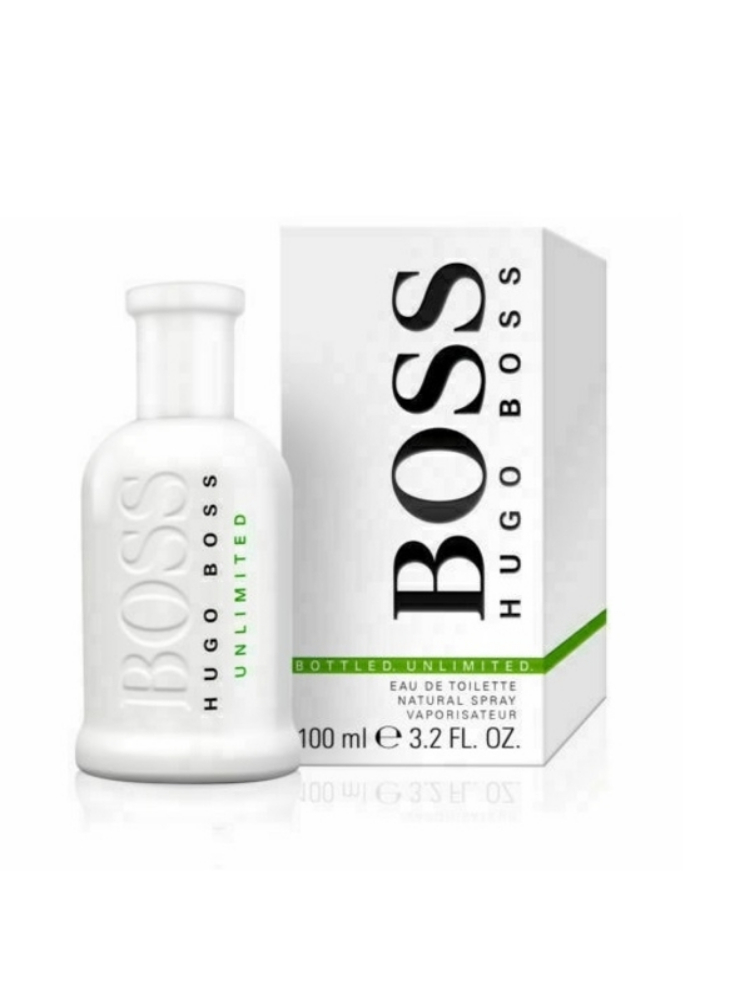 Presenting BOSS Bottle Unlimited, this enduring fragrance serves as a motivating energy boost for personal success beyond all limits. Inspired by green - the color of freshness - the scent mixes top notes of mint and grapefruit, base notes of sandalwood and musk, and with pineapple and rose at its heart for an aromatic and invigorating power.