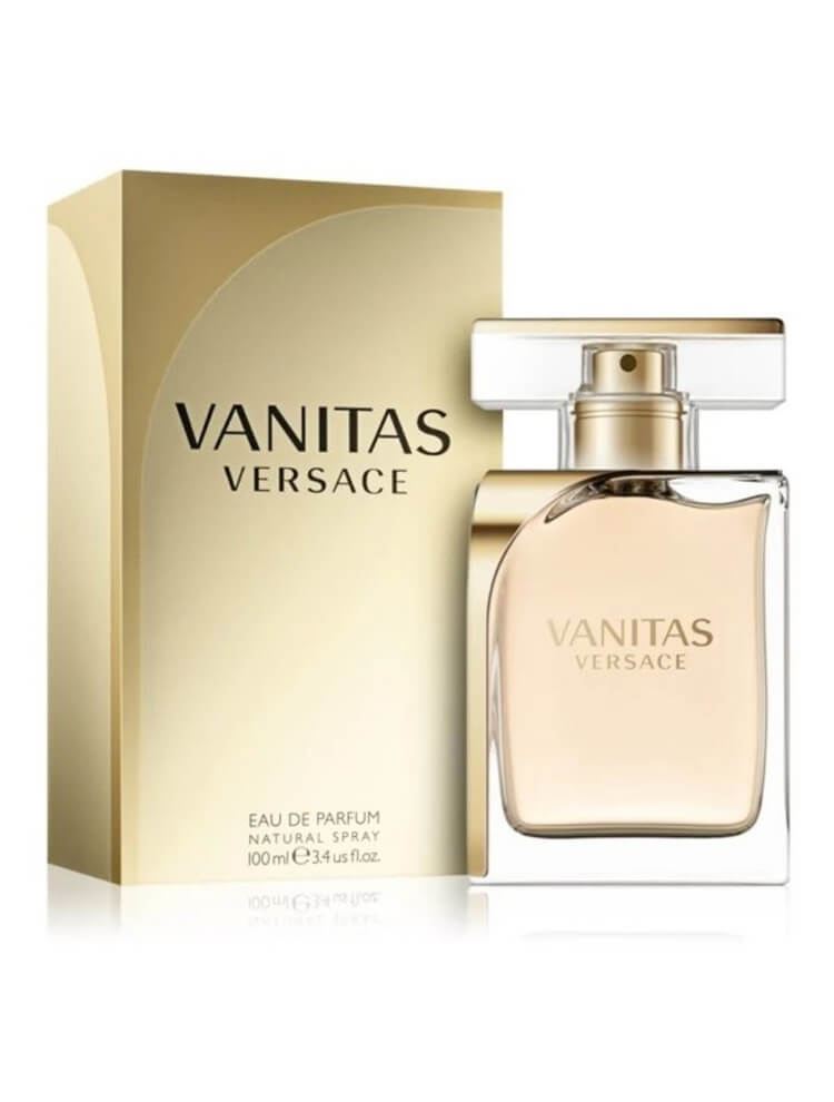 Vanitas Perfume by Versace, Add a touch of glamour with Vanitas, the signature scent that takes you from business meeting to night on the town . This complex fragrance is at once sweet, spicy, floral and woody. Spray on your pressure points and you are treated to a top note of fresh lime. After the citrus fades, a floral heart accord of freesia and Tiare flower greets you before melting to an alluring base of warm tonka bean and Virginia cedar. Originally launched in 2011, this golden-hued fragrance is available as both an eau de parfum and an eau de toilette.