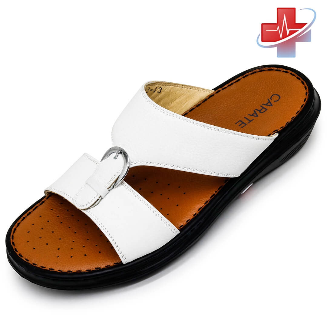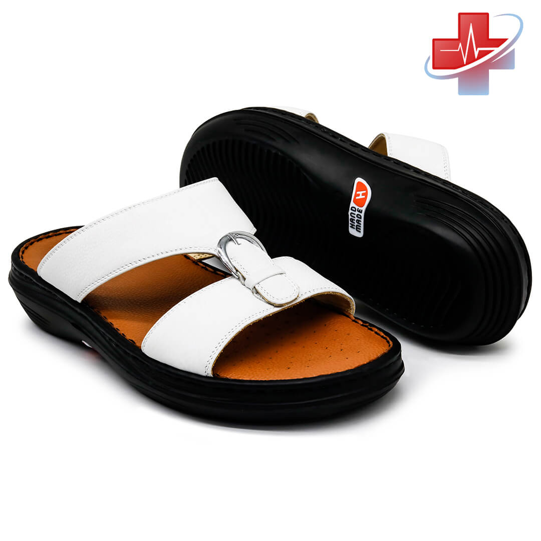 أكمل مظهرك عند ارتداءك لهذه الصنادل من دار صنادل الكاراتيه. يضمن لك الاستدامة ومقاومة الانزلاق. ستناسب هذه الأحذية الرسمية مع كندورة وغترة بيضاء.