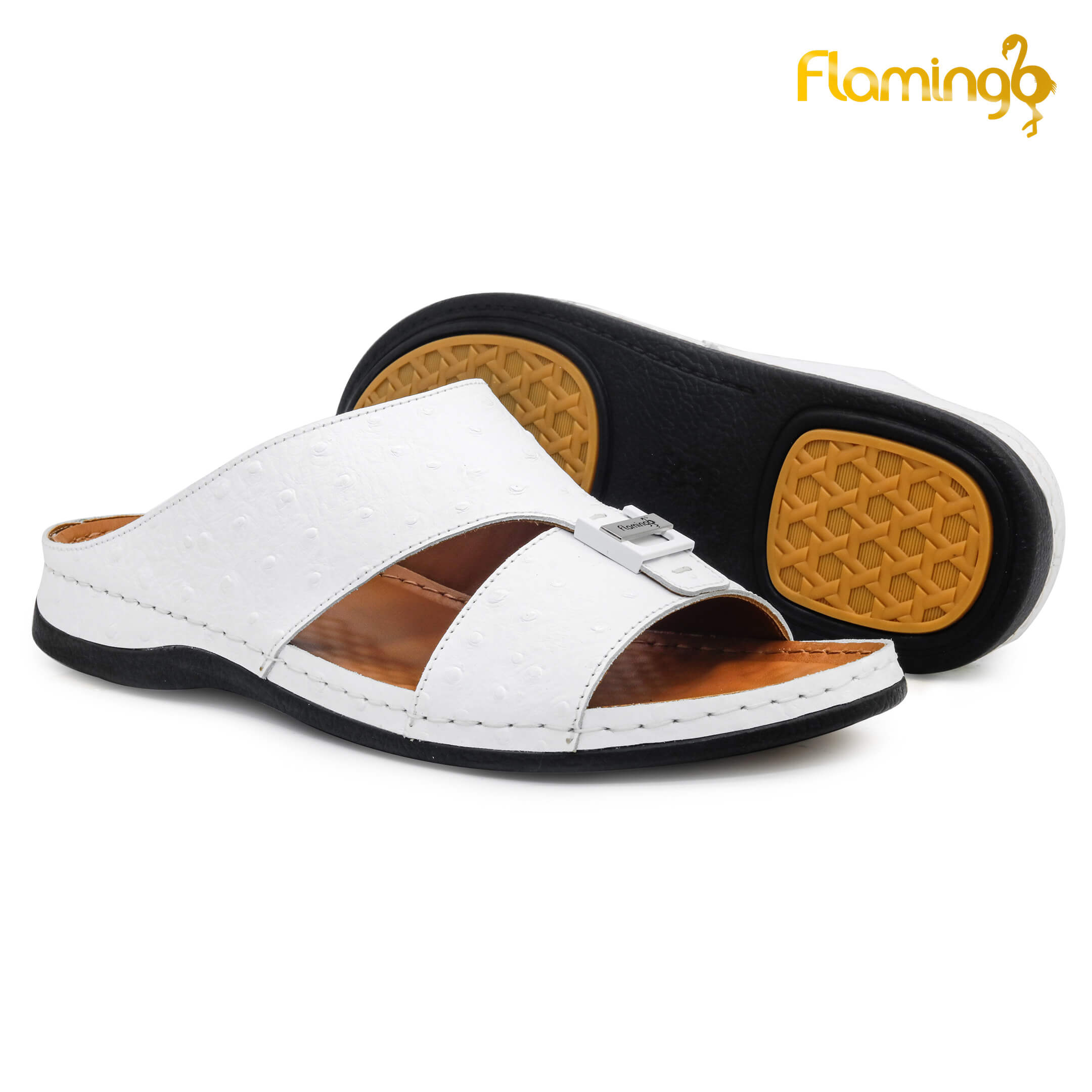 حافظ على راحة وسلامة قدميك من خلال صنادل الجلد المميزة من دار فلامنغو في الإمارات العربية المتحدة. فهذا الصندل الغني بالنقوش مثالي لجميع المناسبات. صندل مصنوع من مواد عالية الجودة تتميز بخفة وزنها ومستوى أمانها العالي بفضل النعل "المقاوم للانزلاق". كما أن هذا الصندل الجلدي مصمم ليتحمل الاستعمال لفترة طويلة وتمت صناعته بواسطة متخصصين محترفين في الإمارات. فإذا كنت تريد أن تمشي بكل راحة وأناقة فلا تتردد في اقتناء هذا الصندل.