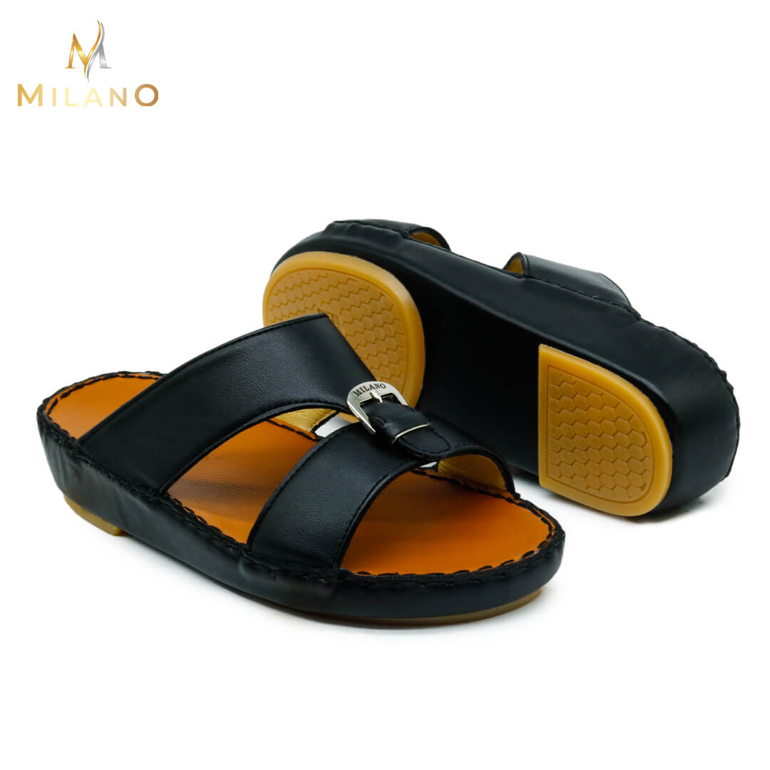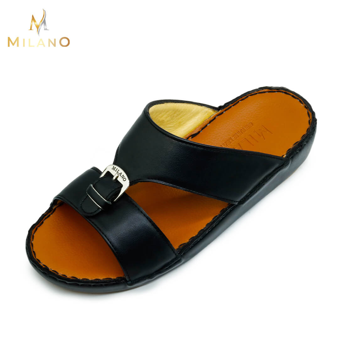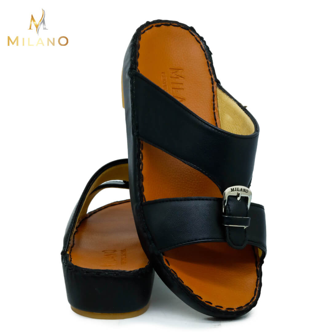 صندل ميلانو مصنوع من خامات عالية الجودة تحافظ على قوتها مما يعني أن الصندل يدوم لفترة طويلة. يتبع هذا الصندل الأسلوب الذي يوازن بين الكلاسيكية والحديثة ، مما يجعله أنيقًا دائمًا بين الصنادل العربية.