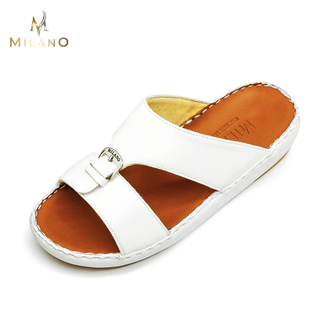 صندل ميلانو مصنوع من خامات عالية الجودة تحافظ على قوتها مما يعني أن الصندل يدوم لفترة طويلة. يتبع هذا الصندل الأسلوب الذي يوازن بين الكلاسيكية والحديثة ، مما يجعله أنيقًا دائمًا بين الصنادل العربية.