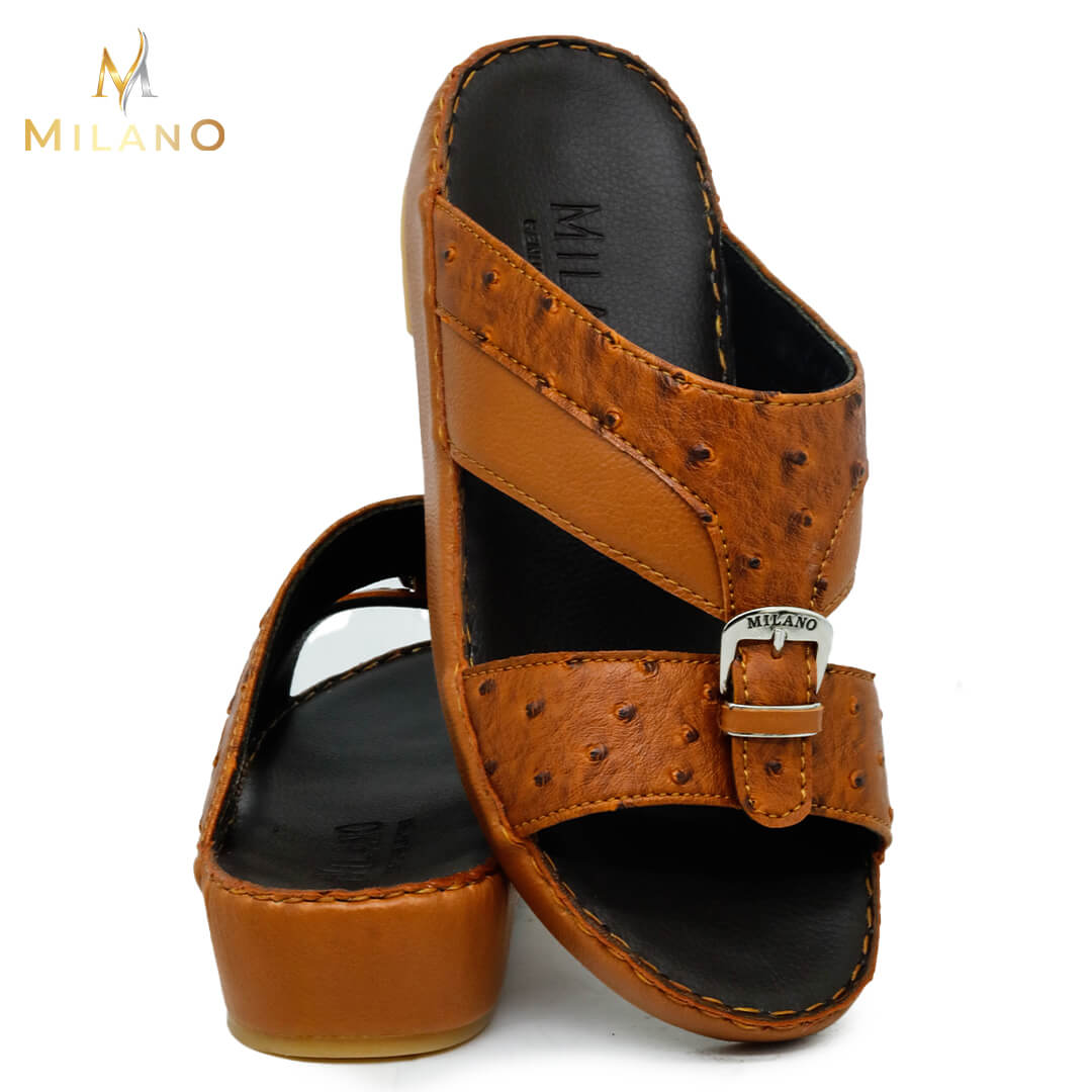 صندل ميلانو مصنوع من خامات عالية الجودة تحافظ على قوتها مما يعني أن الصندل يدوم لفترة طويلة. يتبع هذا الصندل الأسلوب الذي يوازن بين الكلاسيكية والحديثة ، مما يجعله أنيقًا دائمًا بين الصنادل العربية.