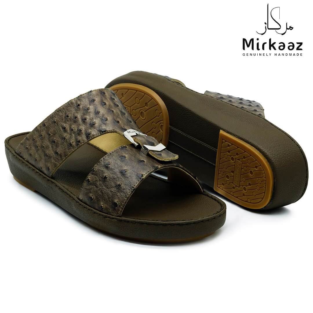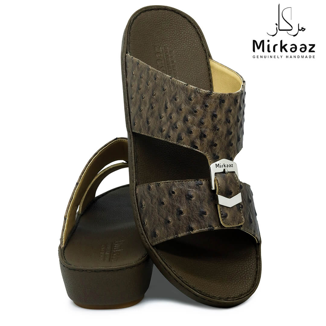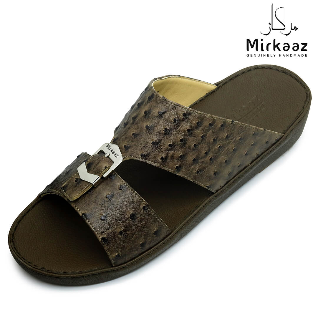 حافظ على راحة وسلامة قدميك من خلال صنادل الجلد المميزة من دار ميركاز في الإمارات العربية المتحدة. فهذا الصندل الغني بالنقوش مثالي لجميع المناسبات. صندل مصنوع من مواد عالية الجودة تتميز بخفة وزنها ومستوى أمانها العالي بفضل النعل "المقاوم للانزلاق". كما أن هذا الصندل الجلدي مصمم ليتحمل الاستعمال لفترة طويلة وتمت صناعته بواسطة متخصصين محترفين في الإمارات. فإذا كنت تريد أن تمشي بكل راحة وأناقة فلا تتردد في اقتناء هذا الصندل. هذا النعل مصنوع من الداخل من مواد عالية الجودة من البولي يوريثان الذي يتميز بالخفة والمتانة. تمت حياكته يدويًا باستخدام خيط مضفر قوي وتدوم الحياكة لفترة طويلة جدًا. تمنع بطانة النعل الداخلية المصنوعة من مواد عديمة الرائحة تراكم أي نوع من الروائح على سطحها مما يجعلها دائمًا نظيفة حتى بعد الاستخدام الطويل. يوفر المصنع ضمان 6 أشهر للحياكة والنعال