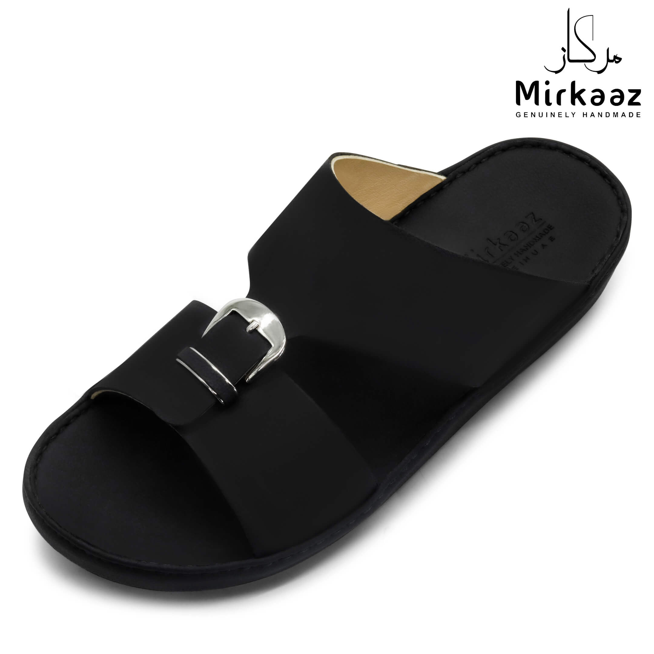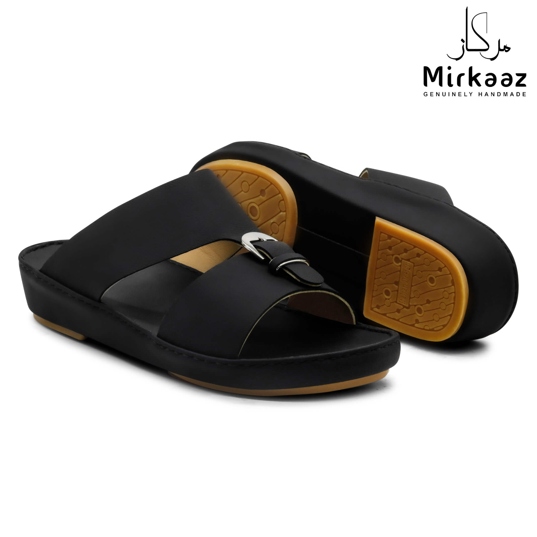 حافظ على راحة وسلامة قدميك من خلال صنادل الجلد المميزة من دار ميركاز في الإمارات العربية المتحدة. فهذا الصندل الغني بالنقوش مثالي لجميع المناسبات. صندل مصنوع من مواد عالية الجودة تتميز بخفة وزنها ومستوى أمانها العالي بفضل النعل "المقاوم للانزلاق". كما أن هذا الصندل الجلدي مصمم ليتحمل الاستعمال لفترة طويلة وتمت صناعته بواسطة متخصصين محترفين في الإمارات. فإذا كنت تريد أن تمشي بكل راحة وأناقة فلا تتردد في اقتناء هذا الصندل. هذا النعل مصنوع من الداخل من مواد عالية الجودة من البولي يوريثان الذي يتميز بالخفة والمتانة. تمت حياكته يدويًا باستخدام خيط مضفر قوي وتدوم الحياكة لفترة طويلة جدًا. تمنع بطانة النعل الداخلية المصنوعة من مواد عديمة الرائحة تراكم أي نوع من الروائح على سطحها مما يجعلها دائمًا نظيفة حتى بعد الاستخدام الطويل. يوفر المصنع ضمان 6 أشهر للحياكة والنعال