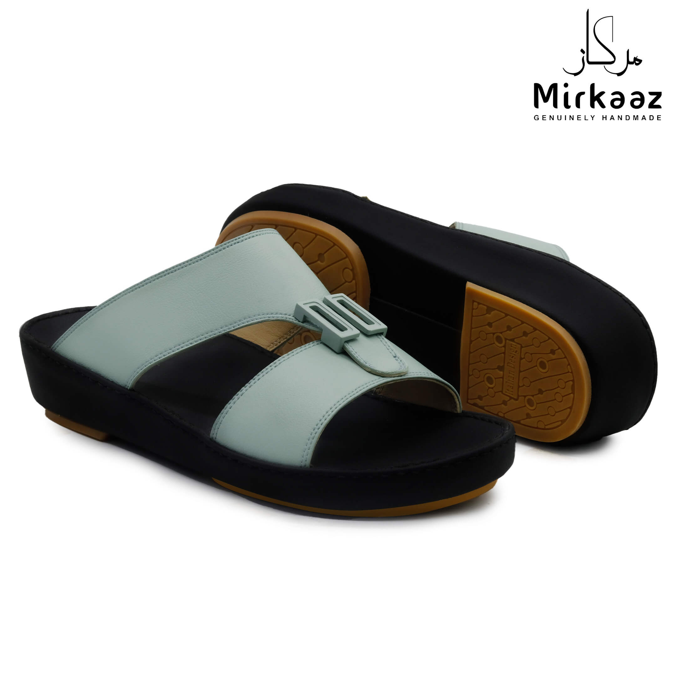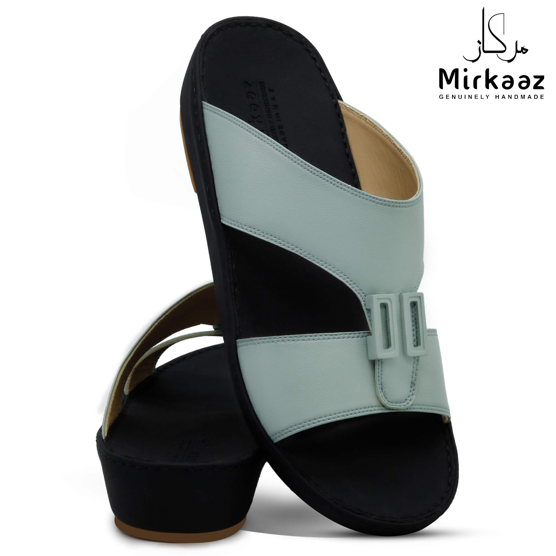 حافظ على راحة وسلامة قدميك من خلال صنادل الجلد المميزة من دار ميركاز في الإمارات العربية المتحدة. فهذا الصندل الغني بالنقوش مثالي لجميع المناسبات. صندل مصنوع من مواد عالية الجودة تتميز بخفة وزنها ومستوى أمانها العالي بفضل النعل "المقاوم للانزلاق". كما أن هذا الصندل الجلدي مصمم ليتحمل الاستعمال لفترة طويلة وتمت صناعته بواسطة متخصصين محترفين في الإمارات. فإذا كنت تريد أن تمشي بكل راحة وأناقة فلا تتردد في اقتناء هذا الصندل. هذا النعل مصنوع من الداخل من مواد عالية الجودة من البولي يوريثان الذي يتميز بالخفة والمتانة. تمت حياكته يدويًا باستخدام خيط مضفر قوي وتدوم الحياكة لفترة طويلة جدًا. تمنع بطانة النعل الداخلية المصنوعة من مواد عديمة الرائحة تراكم أي نوع من الروائح على سطحها مما يجعلها دائمًا نظيفة حتى بعد الاستخدام الطويل. يوفر المصنع ضمان 6 أشهر للحياكة والنعال
