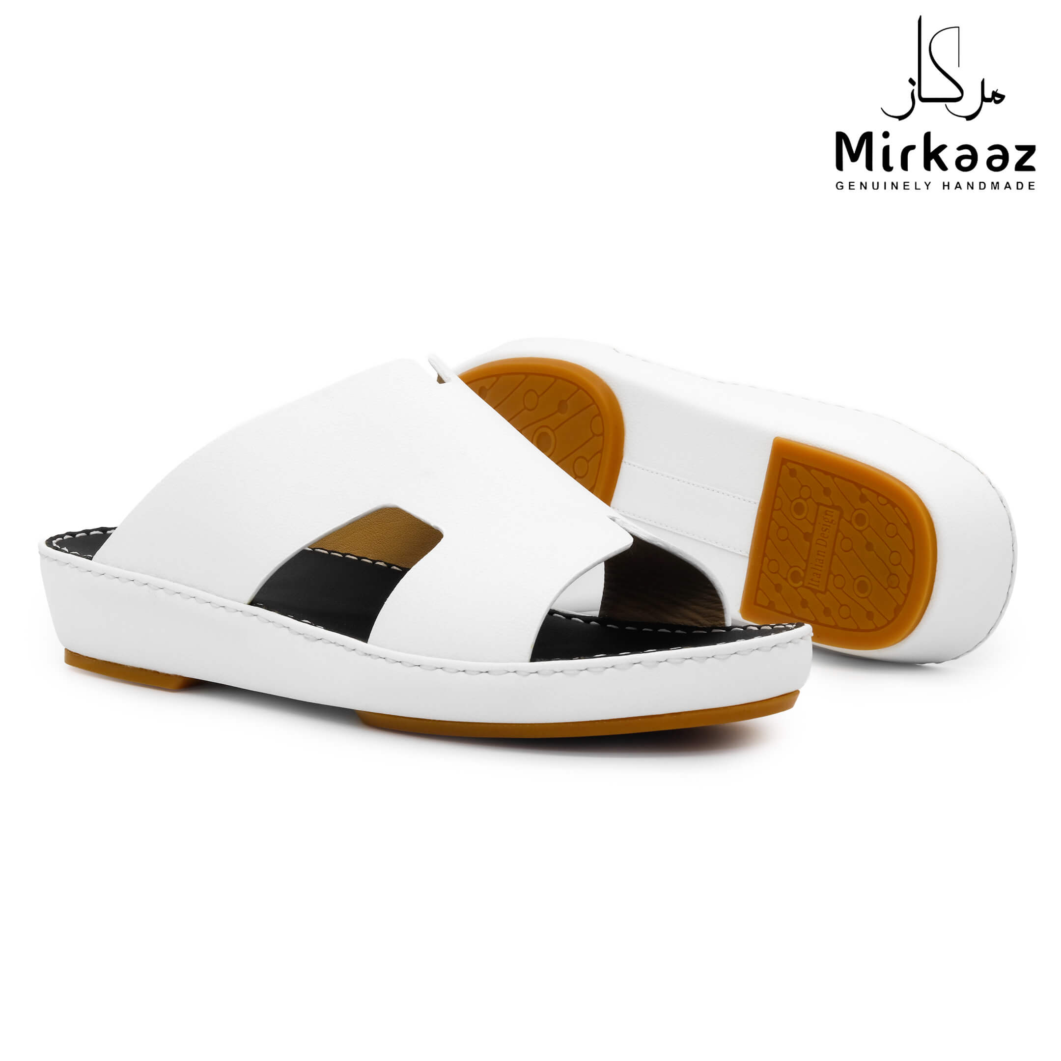 حافظ على راحة وسلامة قدميك من خلال صنادل الجلد المميزة من دار ميركاز في الإمارات العربية المتحدة. فهذا الصندل الغني بالنقوش مثالي لجميع المناسبات. صندل مصنوع من مواد عالية الجودة تتميز بخفة وزنها ومستوى أمانها العالي بفضل النعل "المقاوم للانزلاق". كما أن هذا الصندل الجلدي مصمم ليتحمل الاستعمال لفترة طويلة وتمت صناعته بواسطة متخصصين محترفين في الإمارات. فإذا كنت تريد أن تمشي بكل راحة وأناقة فلا تتردد في اقتناء هذا الصندل. هذا النعل مصنوع من الداخل من مواد عالية الجودة من البولي يوريثان الذي يتميز بالخفة والمتانة. تمت حياكته يدويًا باستخدام خيط مضفر قوي وتدوم الحياكة لفترة طويلة جدًا. تمنع بطانة النعل الداخلية المصنوعة من مواد عديمة الرائحة تراكم أي نوع من الروائح على سطحها مما يجعلها دائمًا نظيفة حتى بعد الاستخدام الطويل. يوفر المصنع ضمان 6 أشهر للحياكة والنعال