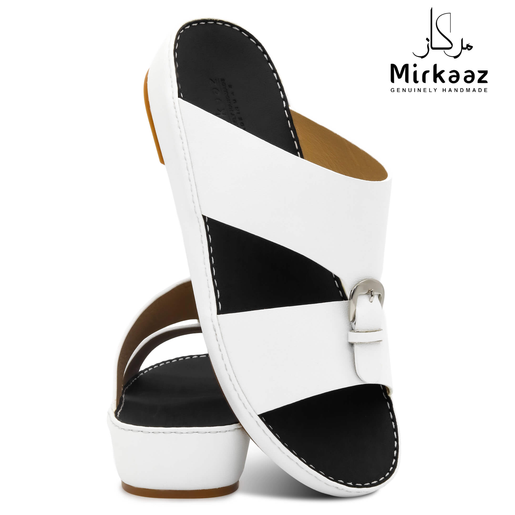 حافظ على راحة وسلامة قدميك من خلال صنادل الجلد المميزة من دار ميركاز في الإمارات العربية المتحدة. فهذا الصندل الغني بالنقوش مثالي لجميع المناسبات. صندل مصنوع من مواد عالية الجودة تتميز بخفة وزنها ومستوى أمانها العالي بفضل النعل "المقاوم للانزلاق". كما أن هذا الصندل الجلدي مصمم ليتحمل الاستعمال لفترة طويلة وتمت صناعته بواسطة متخصصين محترفين في الإمارات. فإذا كنت تريد أن تمشي بكل راحة وأناقة فلا تتردد في اقتناء هذا الصندل. هذا النعل مصنوع من الداخل من مواد عالية الجودة من البولي يوريثان الذي يتميز بالخفة والمتانة. تمت حياكته يدويًا باستخدام خيط مضفر قوي وتدوم الحياكة لفترة طويلة جدًا. تمنع بطانة النعل الداخلية المصنوعة من مواد عديمة الرائحة تراكم أي نوع من الروائح على سطحها مما يجعلها دائمًا نظيفة حتى بعد الاستخدام الطويل. يوفر المصنع ضمان 6 أشهر للحياكة والنعال