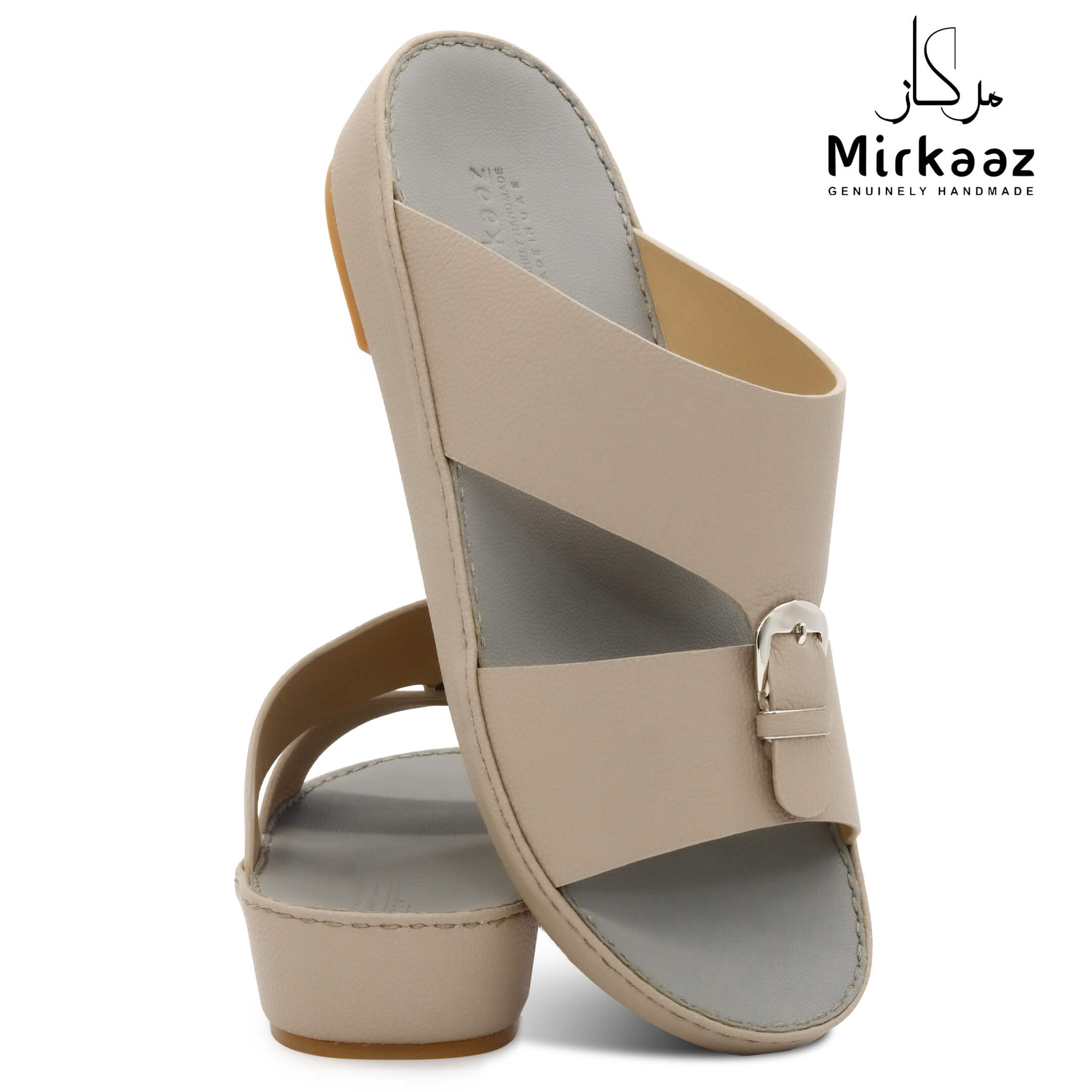 حافظ على راحة وسلامة قدميك من خلال صنادل الجلد المميزة من دار ميركاز في الإمارات العربية المتحدة. فهذا الصندل الغني بالنقوش مثالي لجميع المناسبات. صندل مصنوع من مواد عالية الجودة تتميز بخفة وزنها ومستوى أمانها العالي بفضل النعل "المقاوم للانزلاق". كما أن هذا الصندل الجلدي مصمم ليتحمل الاستعمال لفترة طويلة وتمت صناعته بواسطة متخصصين محترفين في الإمارات. فإذا كنت تريد أن تمشي بكل راحة وأناقة فلا تتردد في اقتناء هذا الصندل. هذا النعل مصنوع من الداخل من مواد عالية الجودة من البولي يوريثان الذي يتميز بالخفة والمتانة. تمت حياكته يدويًا باستخدام خيط مضفر قوي وتدوم الحياكة لفترة طويلة جدًا. تمنع بطانة النعل الداخلية المصنوعة من مواد عديمة الرائحة تراكم أي نوع من الروائح على سطحها مما يجعلها دائمًا نظيفة حتى بعد الاستخدام الطويل. يوفر المصنع ضمان 6 أشهر للحياكة والنعال