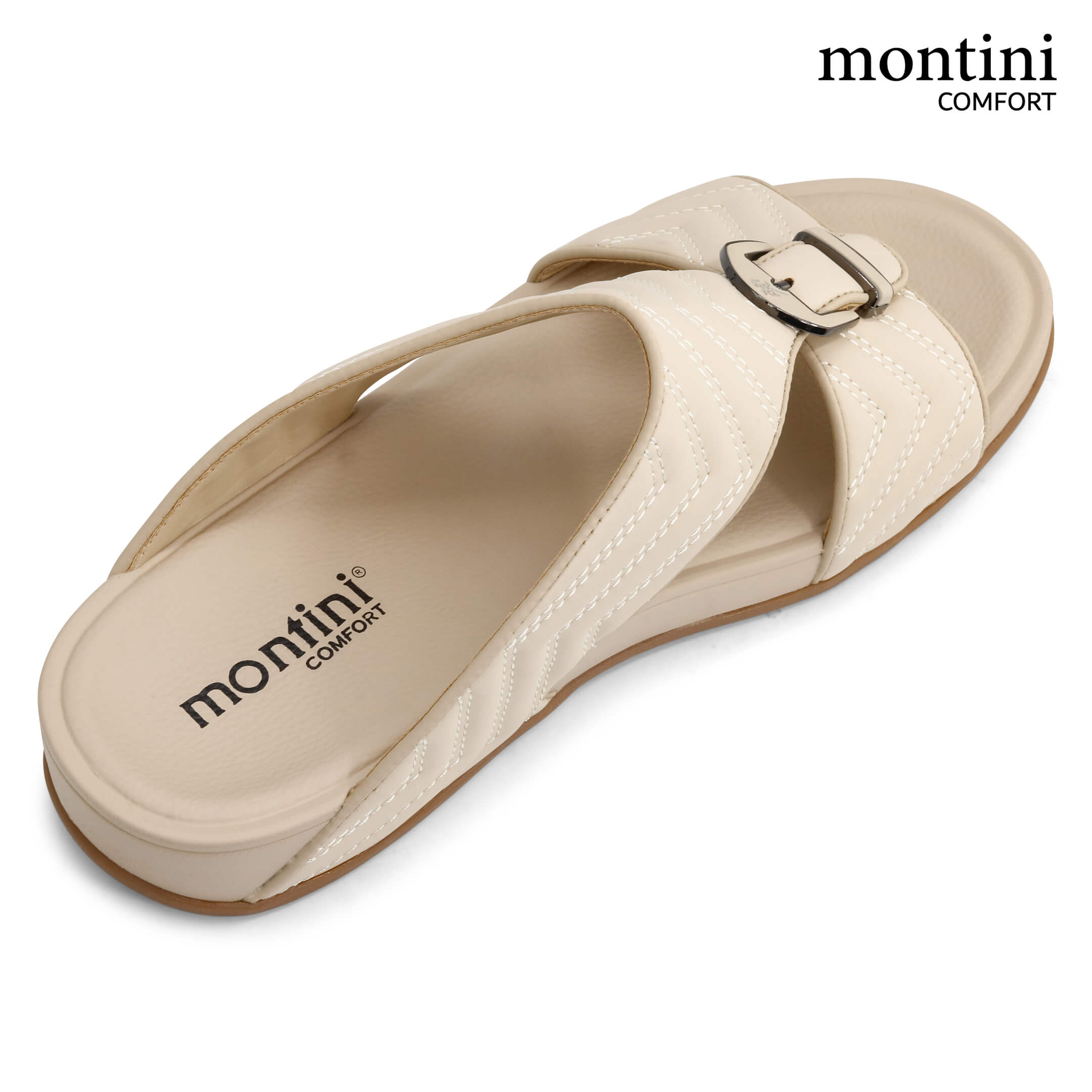صنادل مونتيني مزودة بنوع جديد من النعال يضمن الراحة لقدميك. فالنعل مصنوع من مادة رغوية متماسكة.