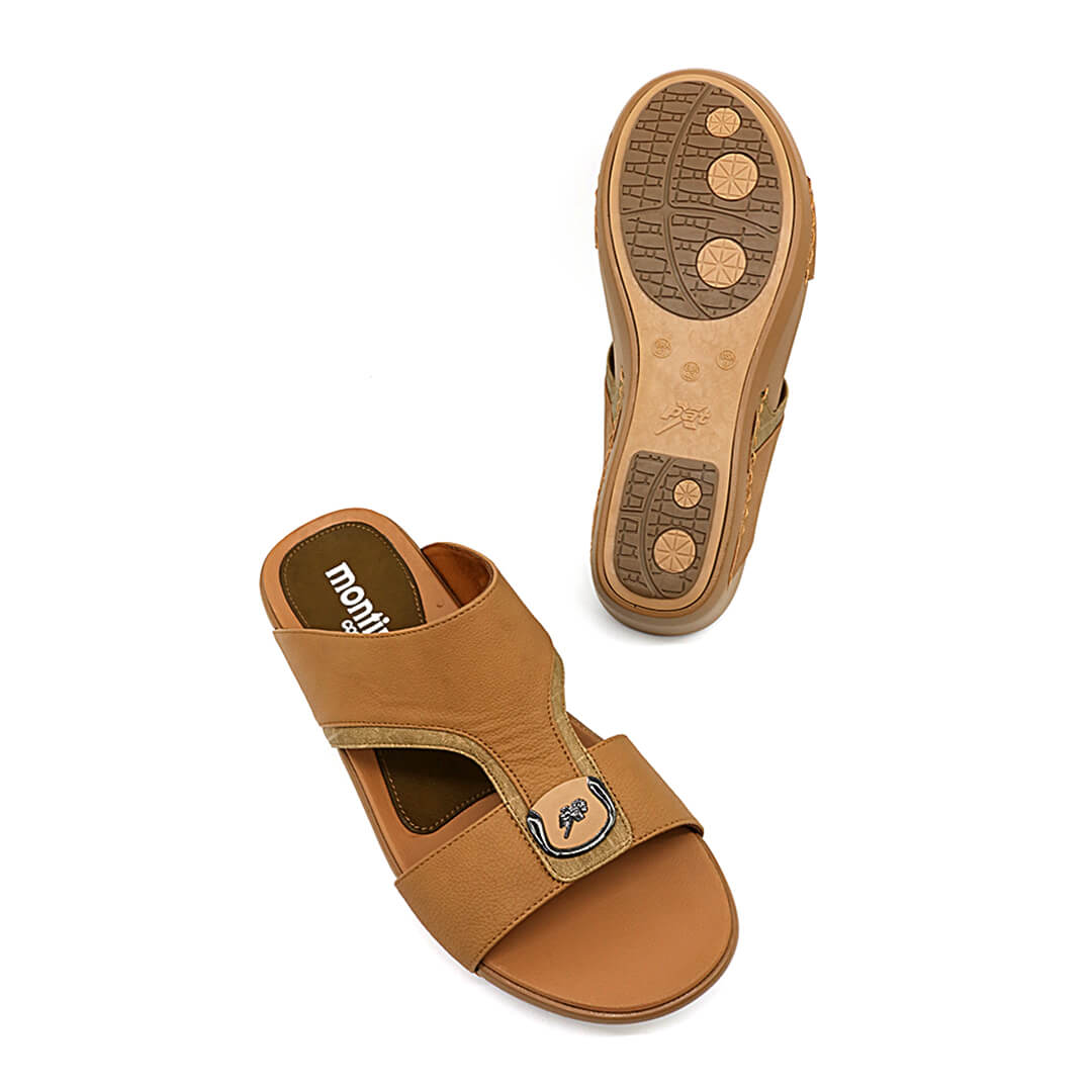 صنادل مونتيني مزودة بنوع جديد من النعال يضمن الراحة لقدميك. فالنعل مصنوع من مادة رغوية متماسكة.