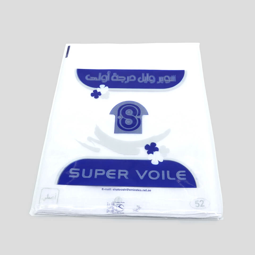 سوبر وايل هي غترة سادة أساسية تتوفر بثمن مناسب. وهي أيضًا متاحة بالكثير من التصميمات والألوان مثل الأبيض الثلجي والأزرق الفاتح.