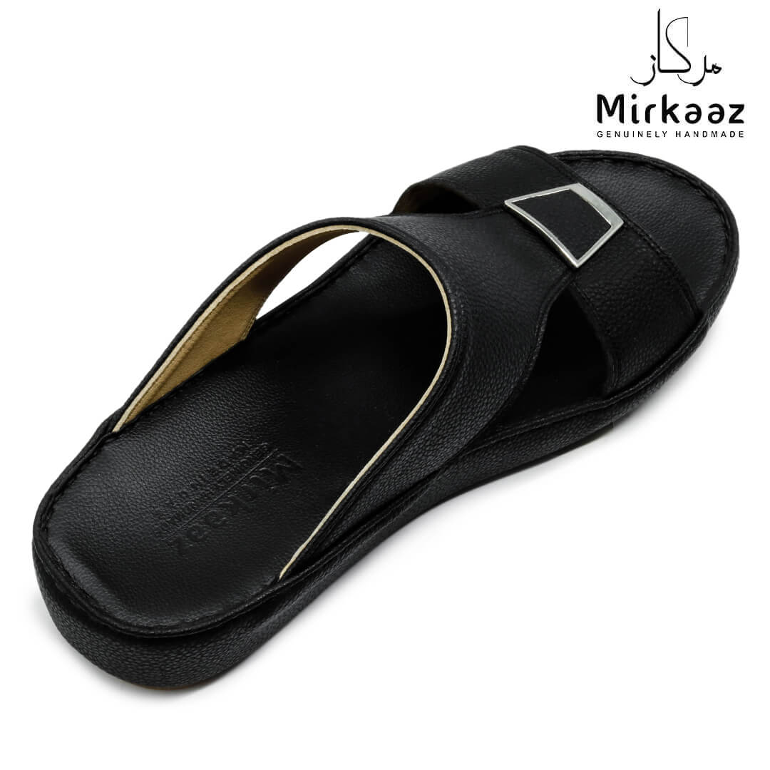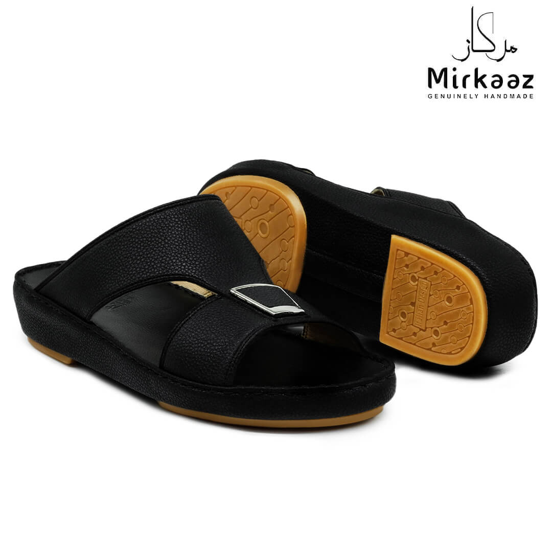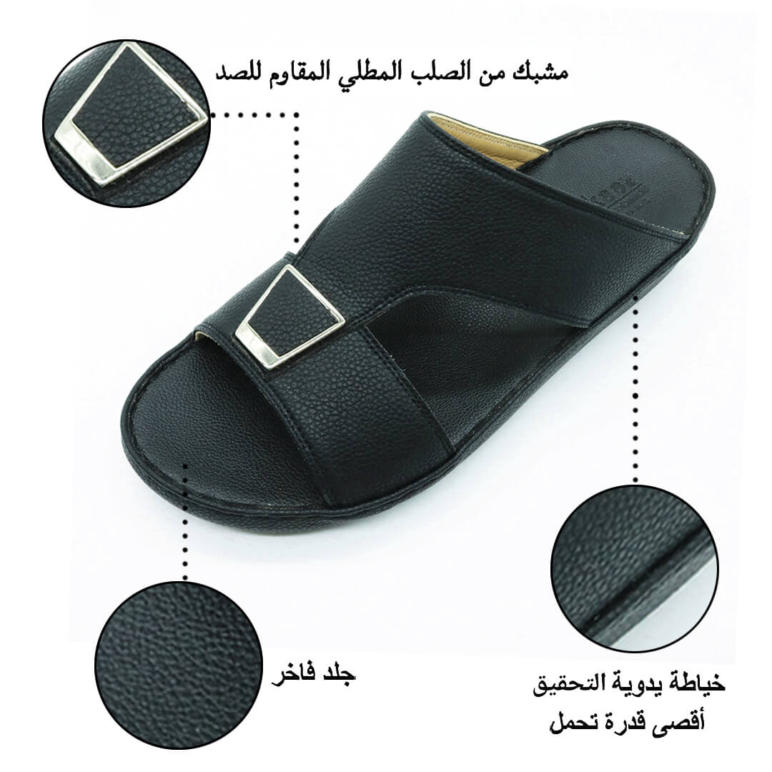 حافظ على راحة وسلامة قدميك من خلال صنادل الجلد المميزة من دار ميركاز في الإمارات العربية المتحدة. فهذا النعال الغني بالنقوش مثالي لجميع المناسبات. نعال مصنوع من مواد عالية الجودة تتميز بخفة وزنها ومستوى أمانها العالي بفضل النعل "المقاوم للانزلاق". كما أن هذا النعال الجلدي مصمم ليتحمل الاستعمال لفترة طويلة وتمت صناعته بواسطة متخصصين محترفين في الإمارات. فإذا كنت تريد أن تمشي بكل راحة وأناقة فلا تتردد في اقتناء هذا النعال. هذا النعل مصنوع من الداخل من مواد عالية الجودة من البولي يوريثان الذي يتميز بالخفة والمتانة. تمت حياكته يدويًا باستخدام خيط مضفر قوي وتدوم الحياكة لفترة طويلة جدًا. تمنع بطانة النعل الداخلية المصنوعة من مواد عديمة الرائحة تراكم أي نوع من الروائح على سطحها مما يجعلها دائمًا نظيفة حتى بعد الاستخدام الطويل. يوفر المصنع ضمان 6 أشهر للحياكة والنعال