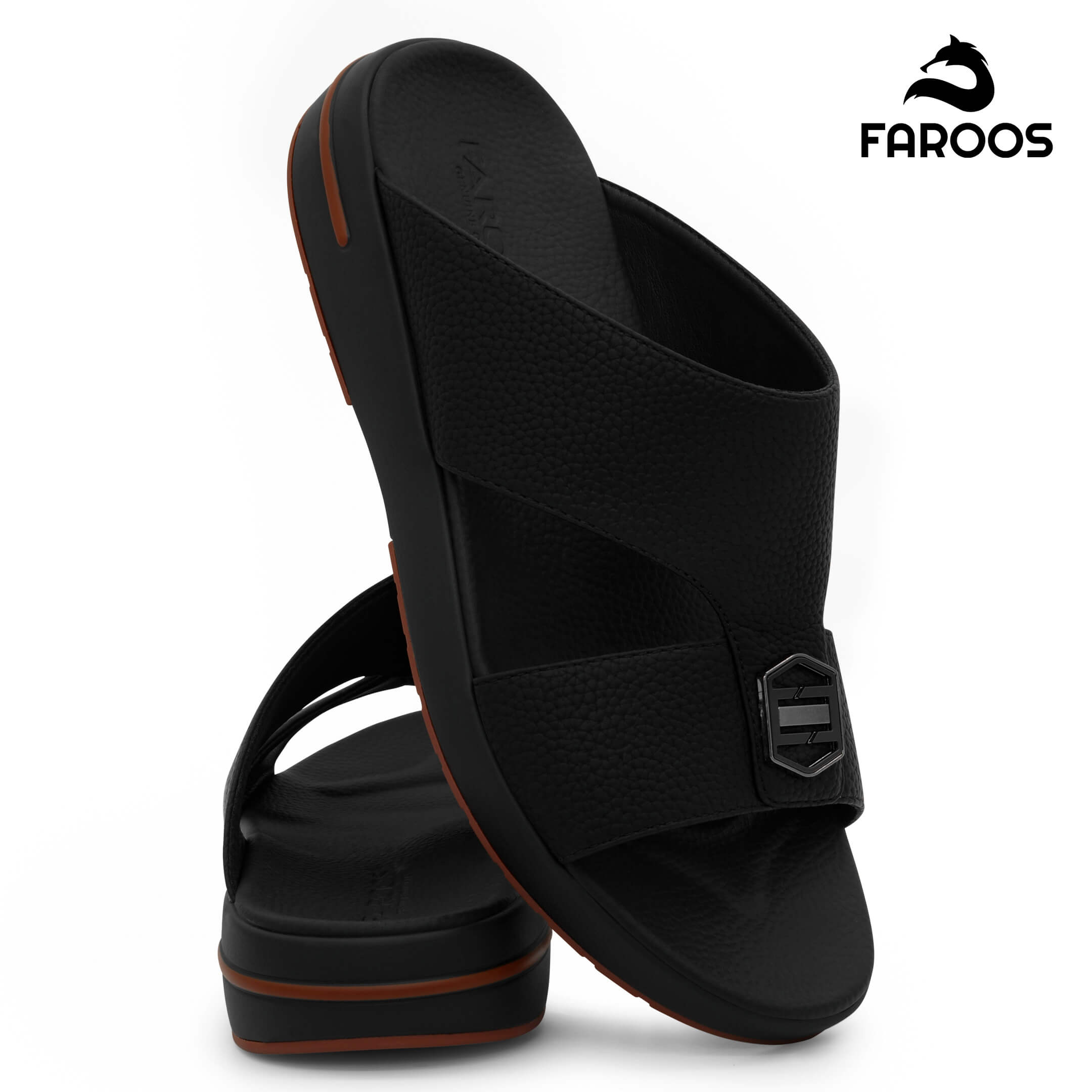 Faroos[F653]M234 Black Gents Arabic Sandal